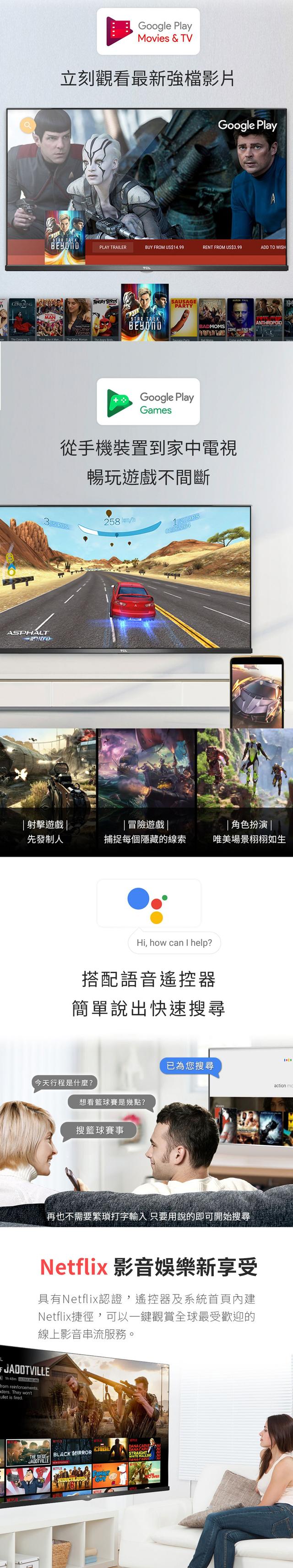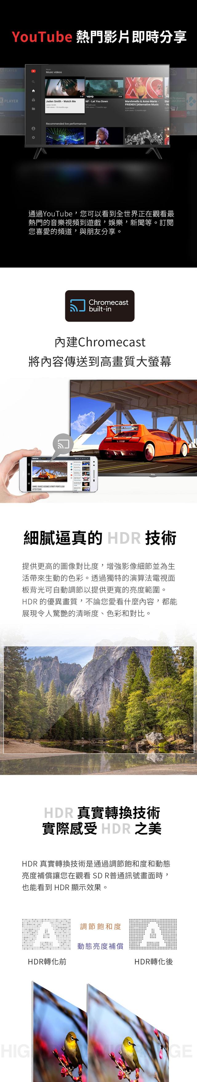 | 其他功能 | 支援HDR, 語音功能遙控器, 智慧聯網功能 |