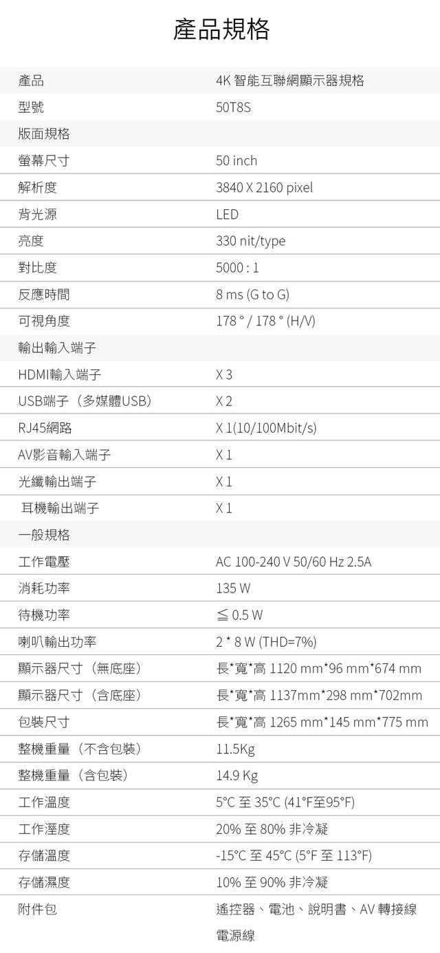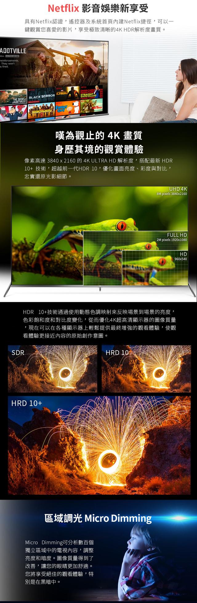 | 其他功能 | 智慧聯網功能, 語音功能遙控器, 支援HDR |