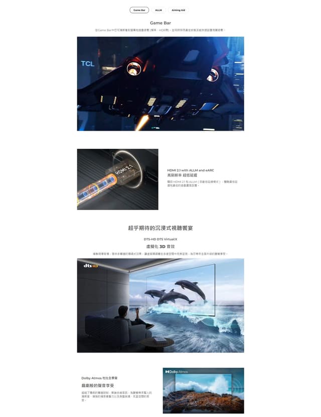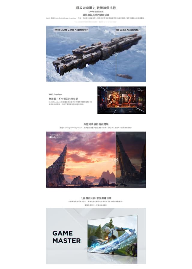 · HDMI 2.1 with ALLM and eARC體驗最低延遲和最佳的遊戲畫面