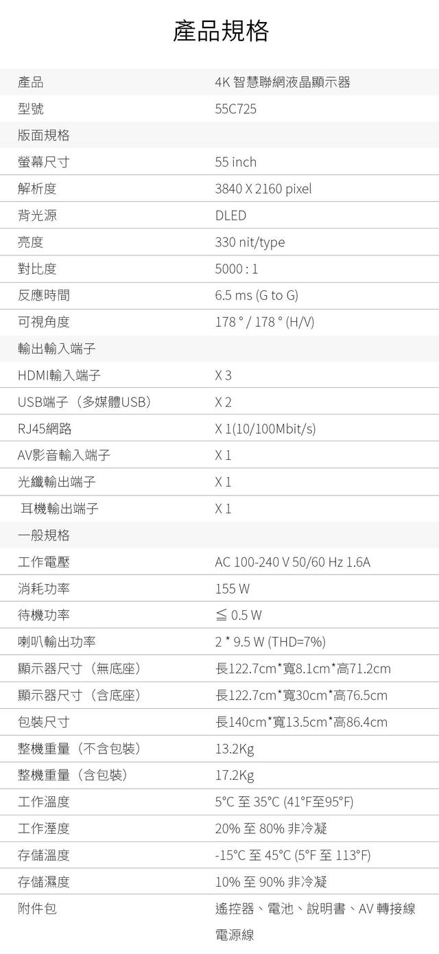| 尺寸 | 55吋 |