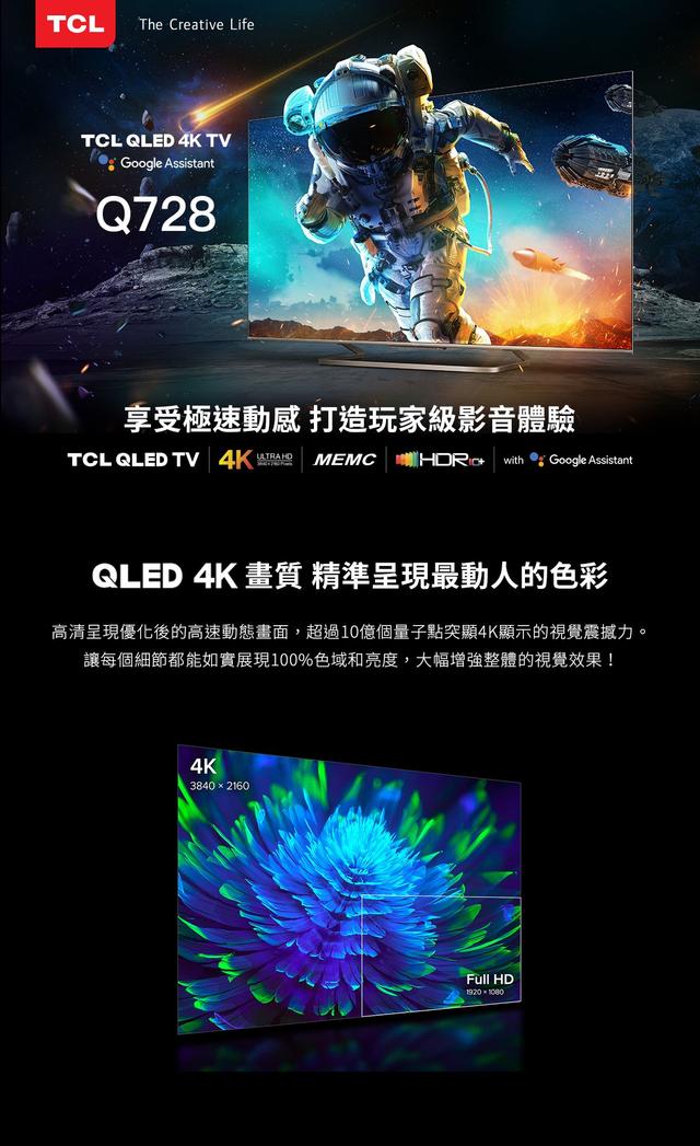 QLED 3840 x 2160 高解析面板
