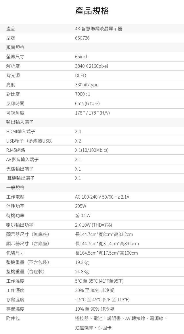 | 尺寸 | 65吋 |