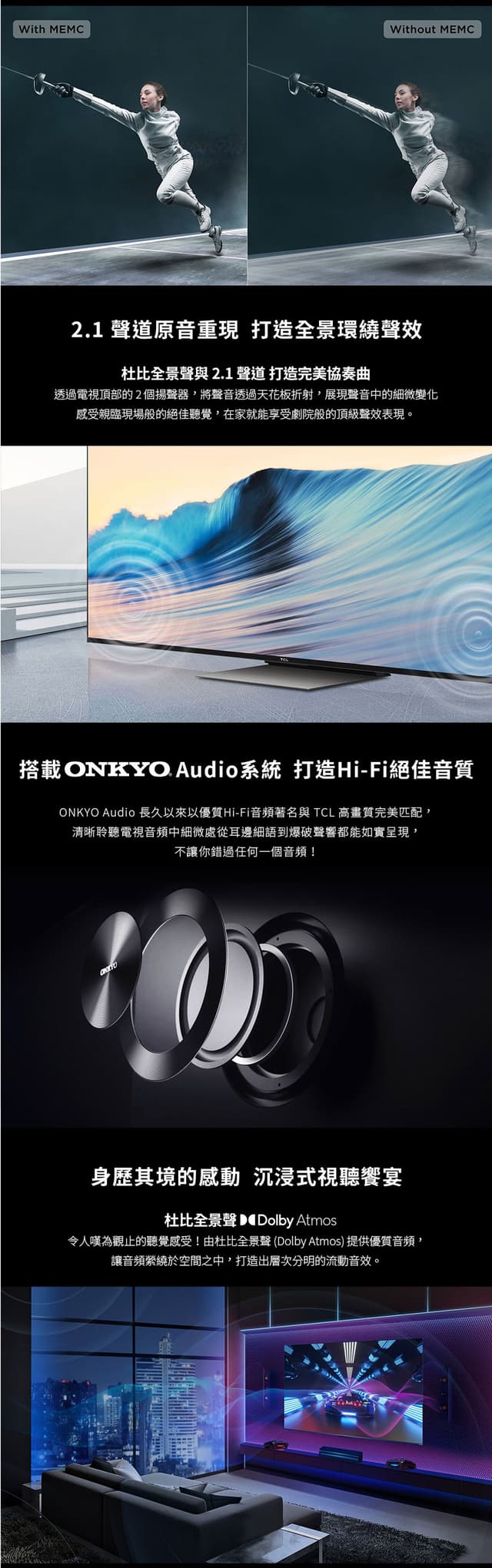DOLBY ATMOS + 2.1聲道打造全景環繞音效