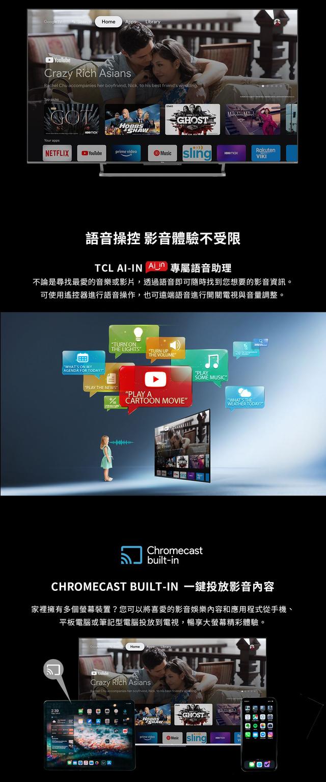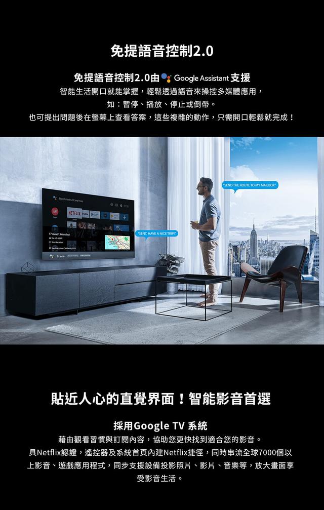 | 其他功能 | 遠端語音控制, 語音功能遙控器, 智慧聯網功能, 支援HDR, Chromecast一鍵投放 |