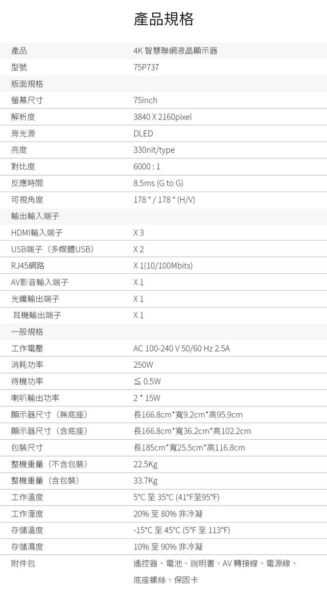 | 尺寸 | 75吋 |