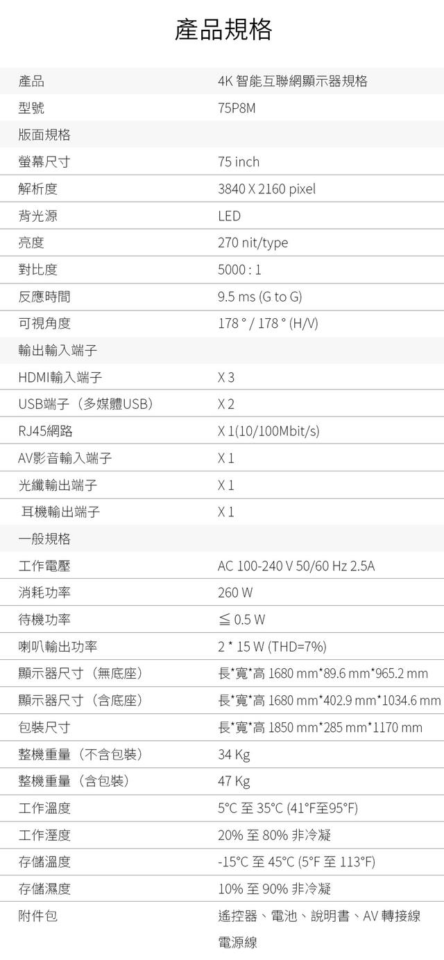 | 尺寸 | 75吋 |