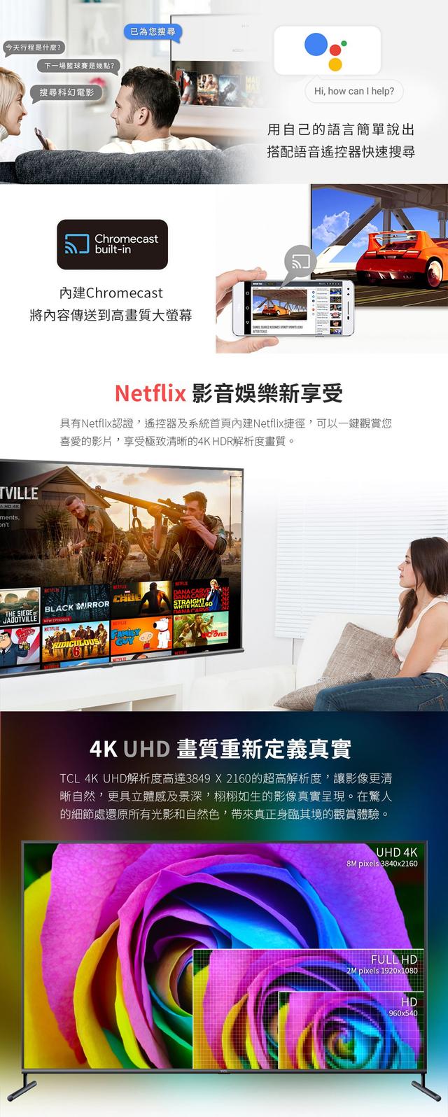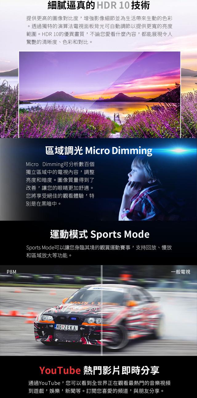 | 其他功能 | 支援HDR, 語音功能遙控器, 智慧聯網功能 |