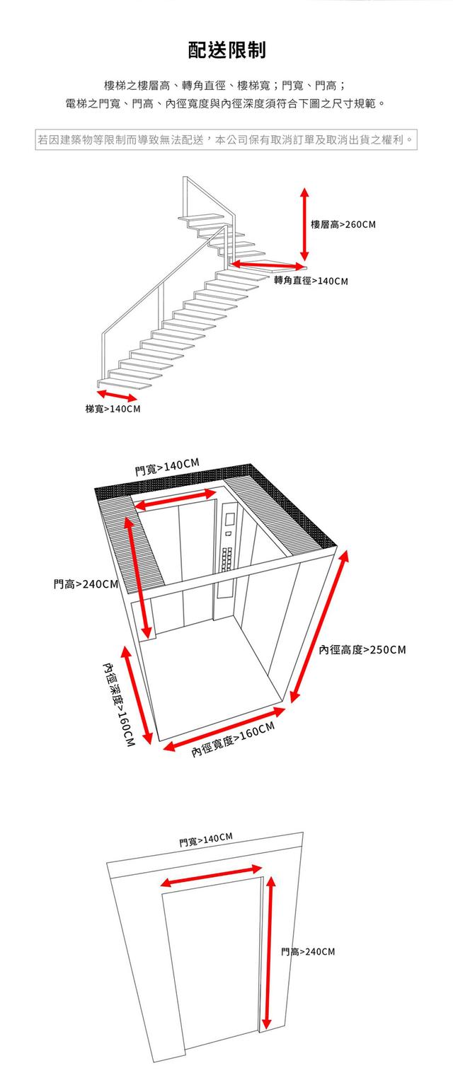 注2*【樓層費用】配送地址若無電梯將加收人力上樓費用,金額將於物流約定配送時由專人報價