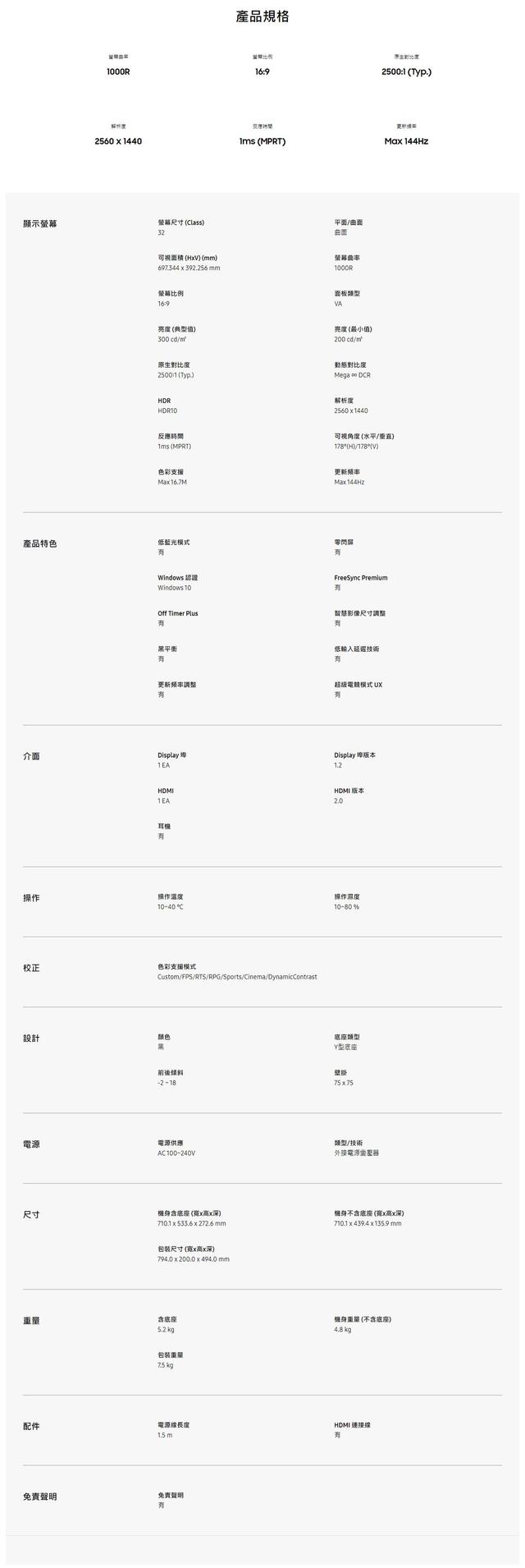 | 螢幕尺寸 | 32吋 |