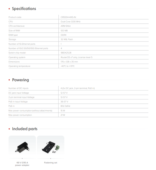 CRS304 由雙核心 ARM CPU 和強大的 Marvell Prestera 交換晶片提供支持,以其微小的尺寸提供卓越的性能。連接埠到連接埠轉送、廣播風暴控制、MAC 過濾、VLAN、流量鏡像、頻寬限制,甚至一些第 3 層硬體卸載 – 對於 CRS304-4XG-IN 來說不是問題!