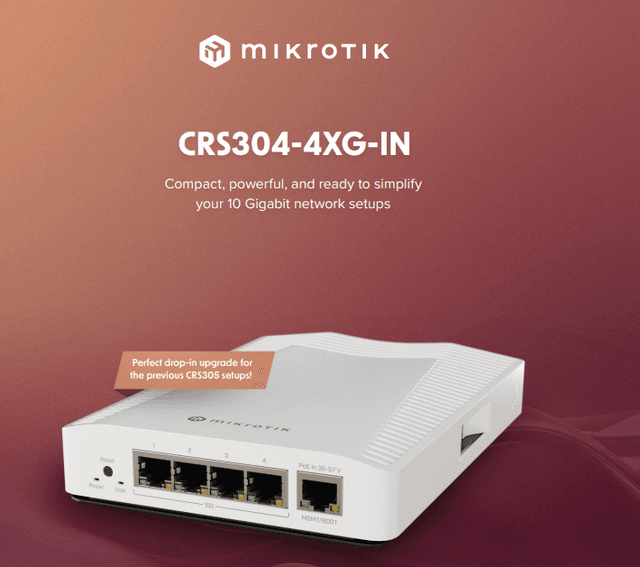 CRS304-4XG-IN – 一款小巧但功能強大的 10 GB 乙太網路交換機,旨在簡化您的網路設定例程。與典型的 10 Gigabit 產品不同,新型 CRS304 配備了四個開箱即用的 10 Gigabit 乙太網路連接埠。沒錯 – 您不需要任何額外的 SFP 模組,只需純粹的即插即用!此外,還有一個額外的 Gigabit 乙太網路連接埠 - 用於管理目的。