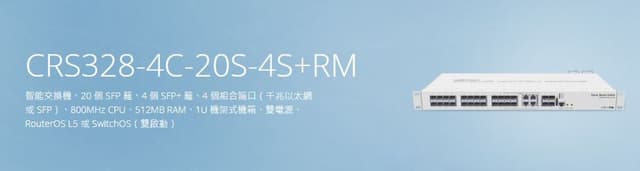 MikroTik CRS328-4C-20S-4S+RM是一款高密度多功能機架型交換器,擁有20埠1G SFP光纖埠,另搭配4埠Combo埠(可同時作為RJ45或SFP),以及4埠10G SFP+,總共28埠靈活配置,滿足大型企業或ISP骨幹網路部署需求。