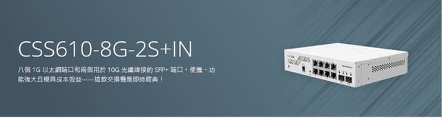 MikroTik CSS610-8G-2S+IN是專為中小型企業與桌面高速應用設計的輕量化智慧型交換器,具備8個Gigabit RJ45埠及2個10G SFP+埠,滿足有線與光纖整合需求。