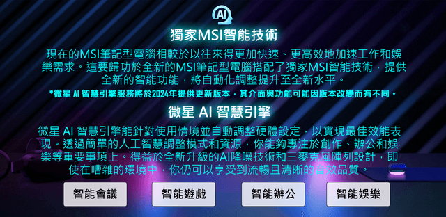 獨家微星AI智慧引擎針對使用情境自動切換最佳效能模式