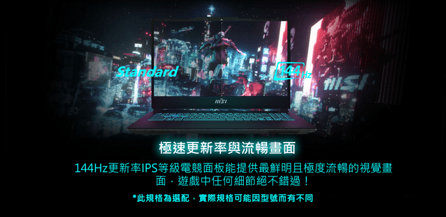 15.6吋Full HD (1920x1080), 144Hz更新率, IPS電競等級面板(選配)