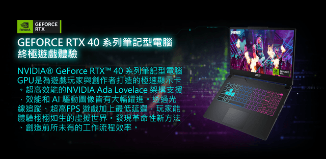 搭載 GeForce RTX™ 4050 筆記型電腦 NVIDIA® GPU