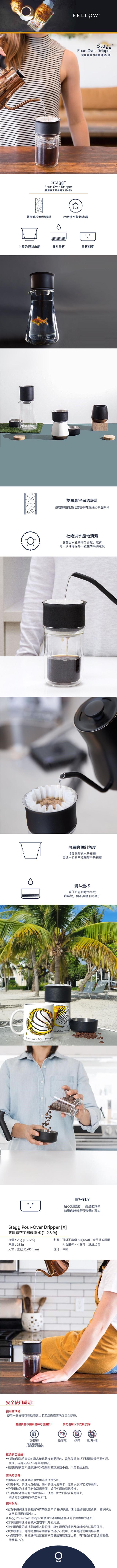 ・內含雙層玻璃馬克杯 / FELLOW Dripper 短濾杯 / FELLOW 短濾紙 10 張・ 雙層內真空,隔熱防降溫・不鏽鋼杯身,矽膠墊片,適合多種尺寸下杯・杯面斜坡設計,增加水面與咖啡接觸,增加萃取・ 量杯刻度設計,精確控制咖啡份量