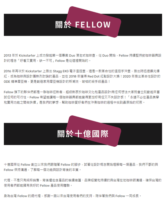 產品本身擁有非人為損壞全機兩年保固,十億國際在台灣建立專屬 Fellow 維修後勤團隊,擁有專業的技術及檢測設備,第一時間分析問題後直接進行維修;長期經營,深耕台灣市場,避免曠日廢時的國際運輸維修過程,就地處理,不須擔心產品過保後變孤兒。