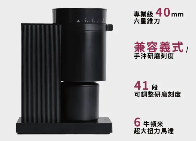 強大扭力、單劑量豆槽和精細刻度調整,無論手沖或是義式咖啡都是最佳的研磨夥伴。