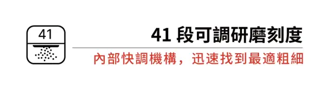 41段可調整研磨刻度,± 6段微調內環