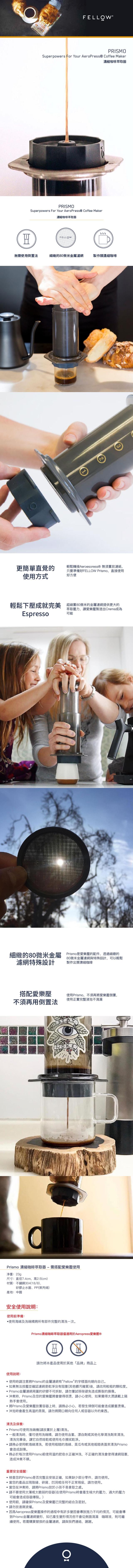 ・PRISMO 是搭配 AeroPress® 愛樂壓的配件商品・一手就能壓出 espresso 的加壓設計・完整浸泡不滴漏・不用濾紙即可壓出美味類濃縮咖啡