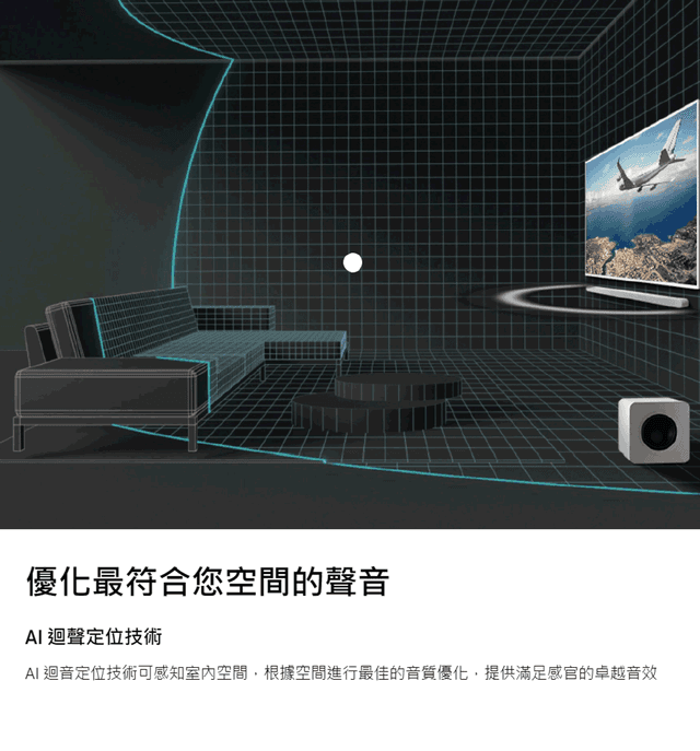 內建真實天空聲道喇叭支援魔幻音場AI 迴聲定位技術