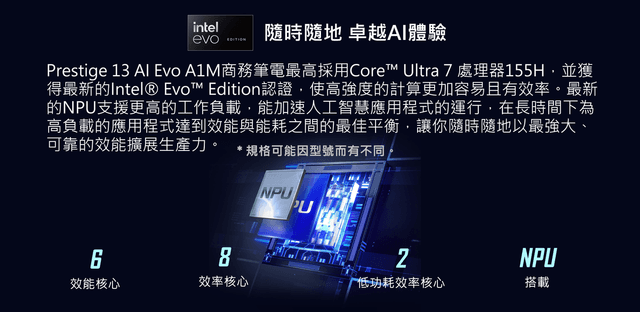 Intel® Evo™ 搭載Intel® Core™ Ultra 7 處理器155H
