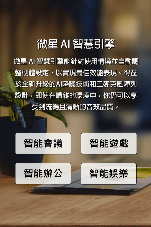 獨家微星AI智慧引擎針對使用情境自動切換最佳系統設定