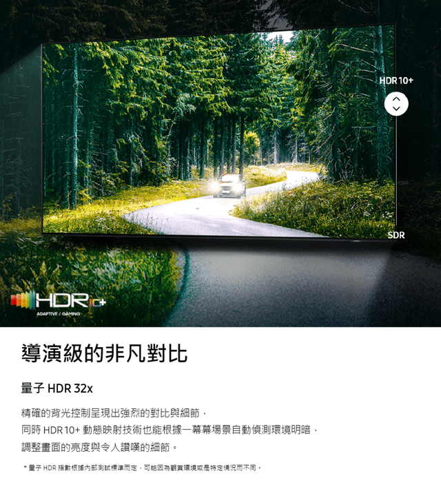 | 其他功能 | 支援HDR, 智慧聯網功能, FreeSync, 語音功能遙控器 |