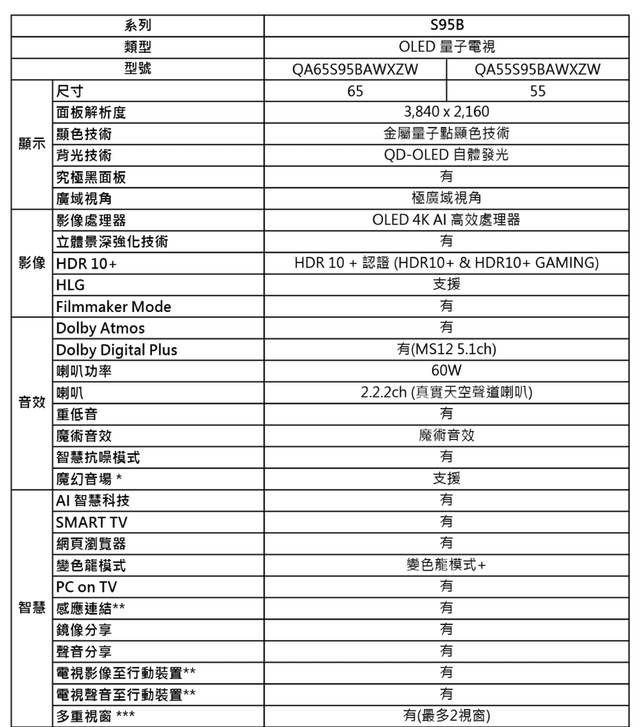 | 音效功能 | DOLBY ATMOS 杜比全景聲, DOLBY Digital Plus |