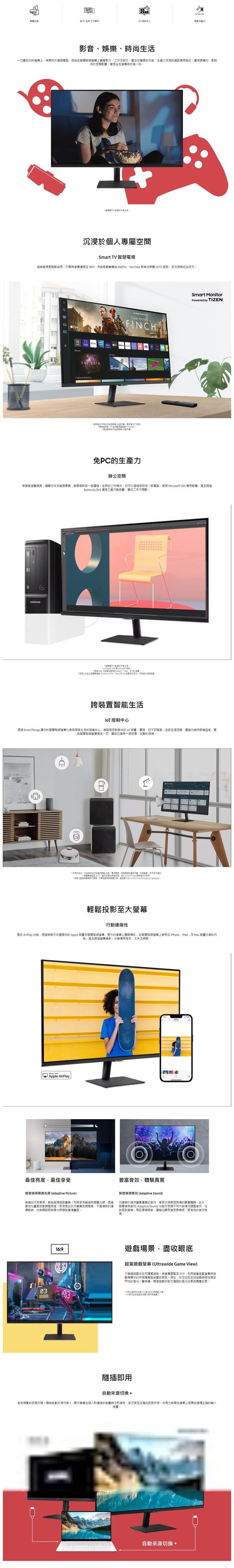 SAMSUNG 三星 M5 27吋 HDR淨藍光智慧聯網螢幕(S27BM500EC)