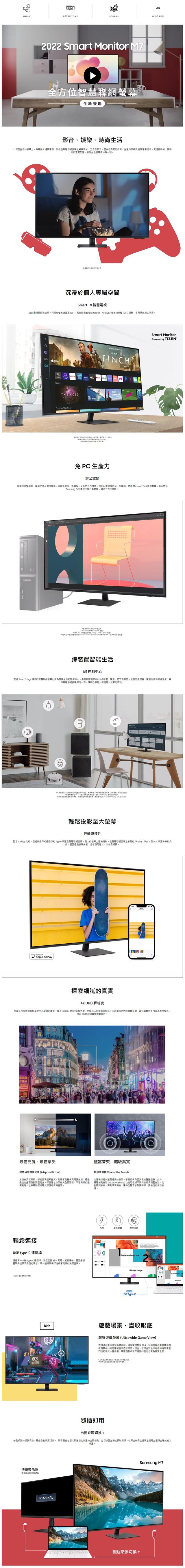 SAMSUNG 三星 M7 43吋 4K HDR淨藍光智慧聯網螢幕(S43BM700UC)