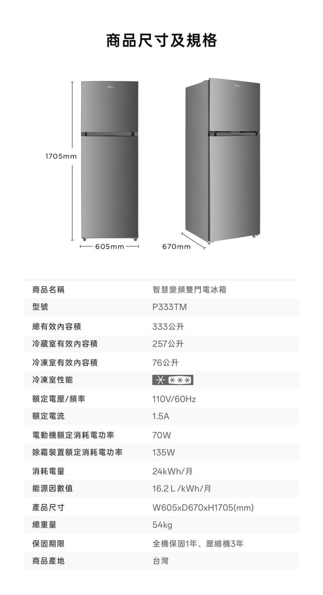 A:總容量 333L,其中冷凍 77L、冷藏 256L。 -