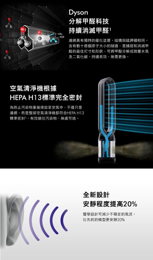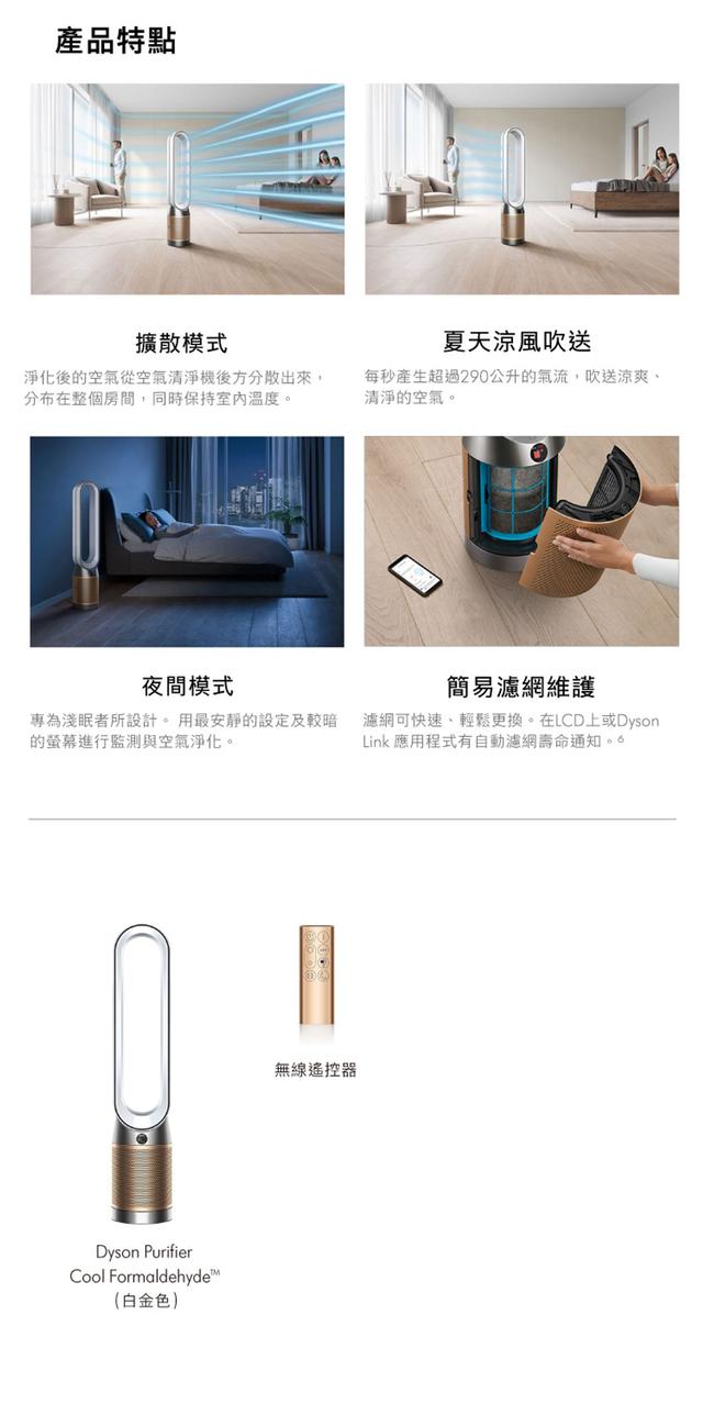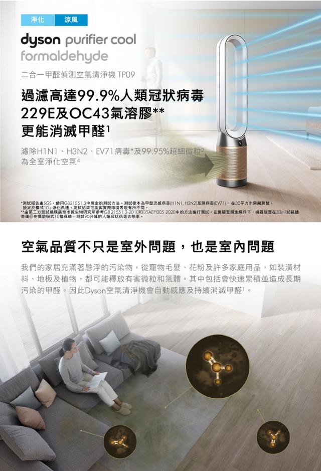 感應/捕捉/分解/吹送:提升空氣淨化層級,智能全室濾凈,有效過濾99.95%有害污染物可濾除流感H1N1, H3N2, EV71腸病毒清淨機、涼風扇二合一,省空間,免收納,全年淨化空氣。360度零死角進氣: 機器隨意擺放都可以360°全方位吸入看不見的汙染空氣