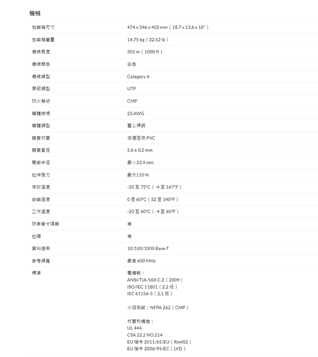 U-Cable-C6-CMP 是一款 Category 6 UTP 纜線,以 23 AWG 實心銅雙絞線導體支援高達 1Gbps 的速度。將導體的小直徑與纜線的防串音分隔器結合,可以隔離及保護訊號免於受到干擾。U-Cable-C6 也是具有防火護套,可以確保完全防火的 CMP 纜線,且在使空氣流通,以促進建築物 HVAC 的夾層空間中特別重要。建議使用 Category 6 乙太網路接頭配合導體的尺寸,並最佳化其效能。