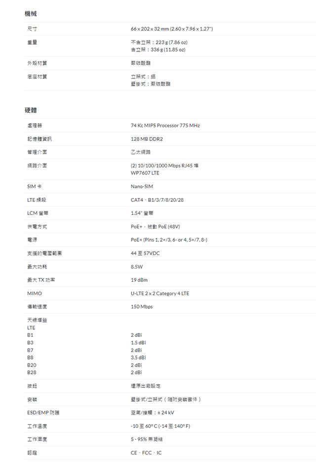 全新的 UniFi LTE Pro 運用 4G LTE 通信網路為您的 UniFi 網路提供聯外網路的冗餘備援,確保您的系統能持續運作而不致因斷網而降低生產力。本機種經測試能搭配台灣各電信商之SIM卡及通信網路,支援 LTE 及 WCDMA 頻段。只要插入電信商提供的 Nano SIM 卡後接入您 UniFi 網路的任意網孔,並在 Dream Machine Pro 或系列產品完成設定啟用,即可開始為系統提供穩定的聯外網路備援。