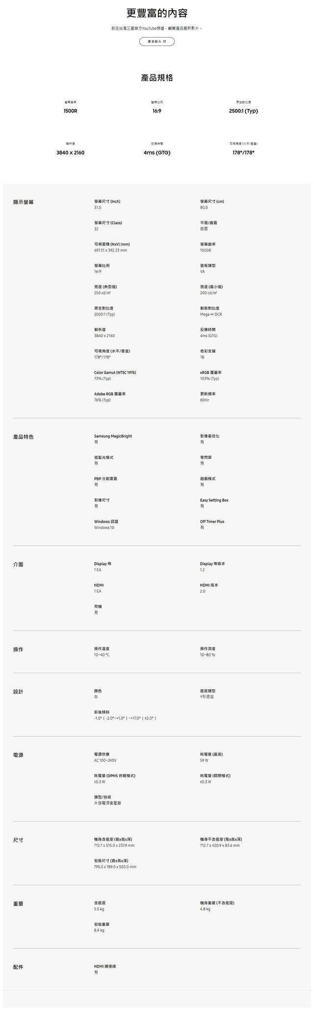 SAMSUNG 三星 32型 4K曲面顯示器(U32R591CWC)