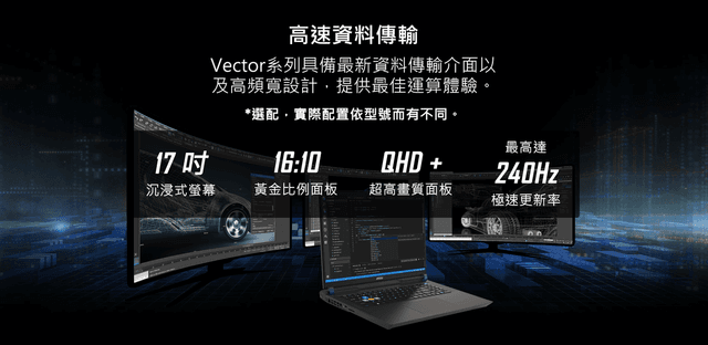 17" QHD+(2560x1600), 240Hz Refresh Rate, IPS-Level, 100% DCI-P3(Typical)