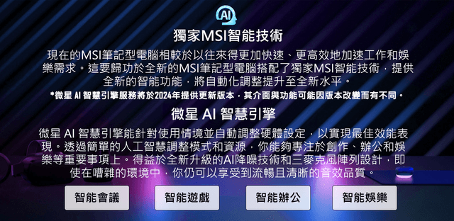 MSI AI Engine針對使用情境自動調整系統設定,實現最佳效能表現
